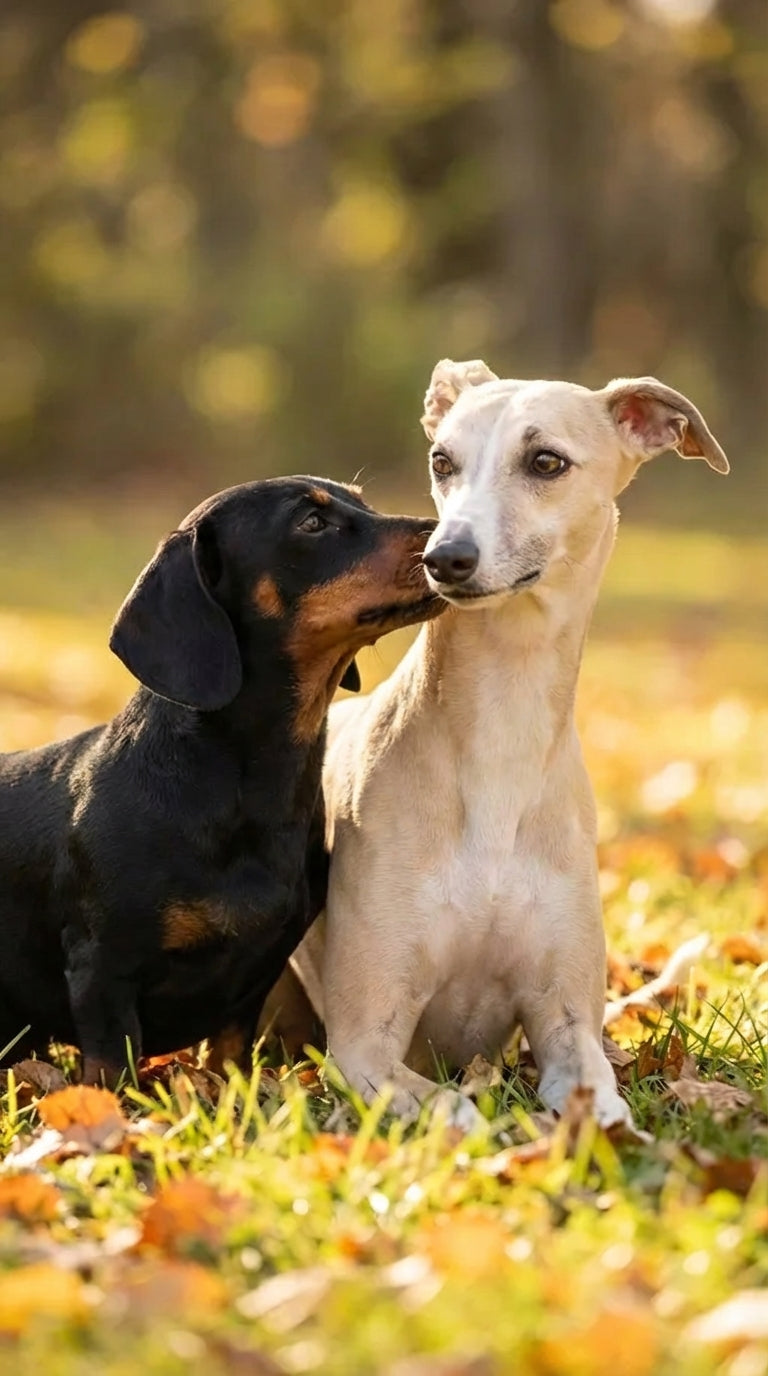 Wir sind Dila, das wilde Whippetmädchen, und Emma, die charakterstarke Dackeldame.